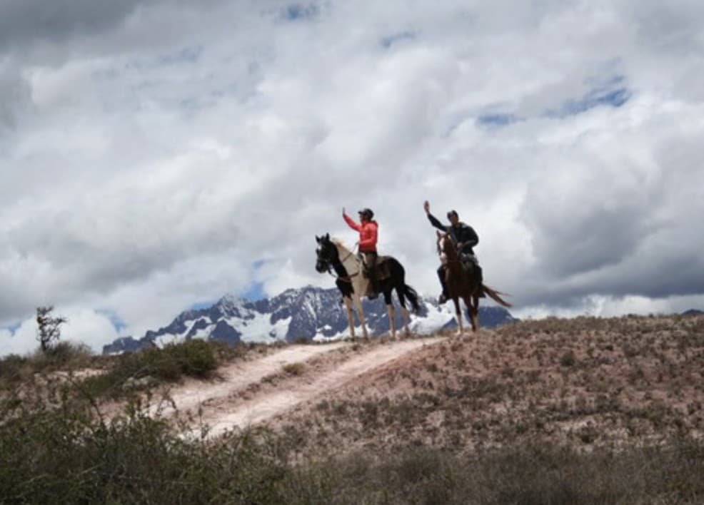 The horseback departure is scheduled around 10:00 from the stables in the village of Paucarbamba, at 2,828 meters. We will cross a wooden suspension bridge and continue along the valley floor on the right bank of the Vilcanota River. The eucalyptus trees growing along the riverbanks will accompany us until we reach one of the largest Inca cemeteries of its time, located on the cliffs of the village of Yanahuara. Shortly after crossing the village of Yanahuara, we will arrive at the Tarabamba suspension bridge, where we will register to enter the Salinas de Maras. The trail leading to the salt flats is rocky, narrow and steep, which is why we will proceed slowly until reaching the complex. Once there, we will dismount and visit the site on foot. Afterwards, we will get back in the saddle and ride up to the Andean village of Maras, where we will enjoy our first lunch with a view of the snow-capped mountains of Chicón and San Juán. After lunch, we will ride along a picturesque trail that will lead us to the village of Misminay, where our hosts will welcome us for dinner and overnight in a guesthouse.