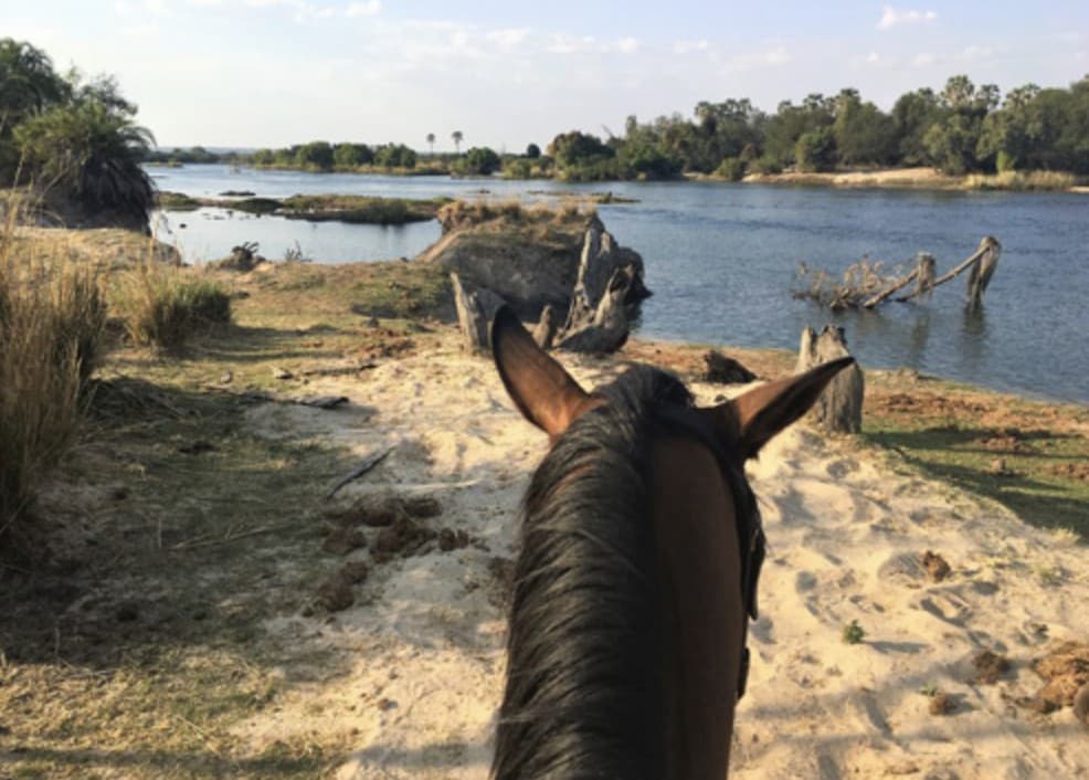 RIDING TIME: FROM 4 TO 6 HOURS IN THE SADDLE. All three gaits will be used, with long trots and gallops. Absolute control of the horse in open spaces and good physical condition are required. Extremely varied terrain, from the shady banks of the Zambezi River to mopane woodland, Kalahari sand dunes and teak forests. Riding along the Zambezi is possible at any water level. All rides start in this area and, after the first morning, extend across different types of terrain. Kalahari sand firebreaks offer the best conditions for galloping.