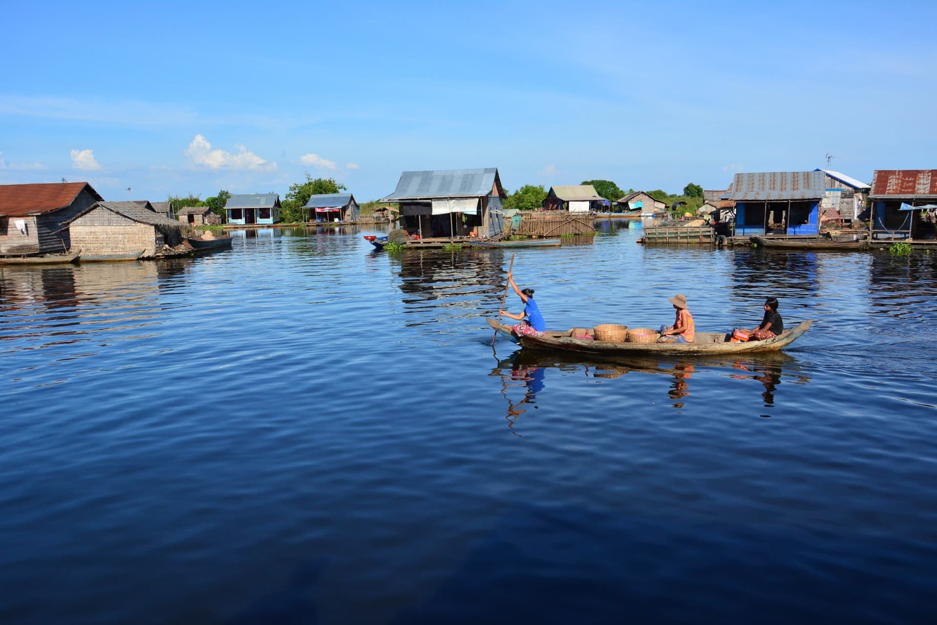 Nel pomeriggio escursione in barca sul Tonle Sap, il lago più grande del Sud-Est Asiatico che nella stagione delle piogge espande a dismisura le sue dimensioni irrigando i fertili campi di riso che nei secoli costituirono una delle principali ricchezze sulle quali si fondò il glorioso Impero dei Khmer. Oggi sulle rive del lago sono ubicati diversi villaggi di pescatori, generalmente appartenenti a minoranze etniche di diversa origine, che vivono in case di legno galleggianti sul fiume.