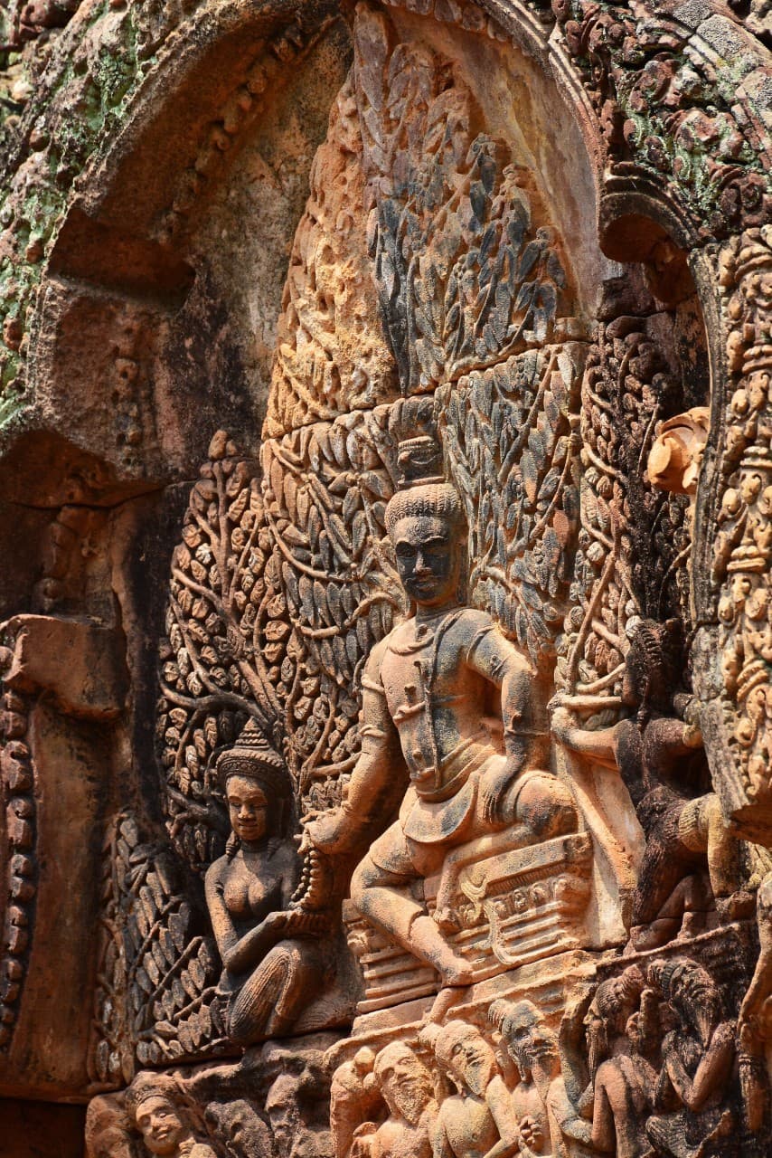 Circa 20km più a nord troviamo invece uno dei capolavori artistici più raffinati e pregiati che gli antichi Khmer ci abbiano tramandato. Si tratta di un piccolo tempio interamente ricoperto di stupendi bassorilievi. Oggi il tempio è noto come Banteay Srei, la “cittadella delle donne”.